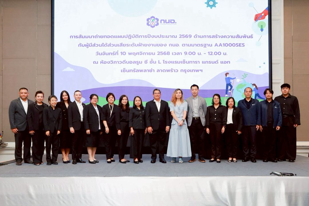 กนอ. จัดสัมมนาเพื่อถ่ายทอดแผนปฏิบัติการปีงบประมาณ 2569 ด้านการสร้างความสัมพันธ์กับผู้มีส่วนได้ส่วนเสียระดับฝ่ายงานของ กนอ. ตามมาตรฐาน AA1000SES ให้กับหน่วยงานที่เกี่ยวข้องรับทราบ และทำกิจกรรม Workshop ในการนำแผนปฏิบัติการปีงบประมาณ 2569 ด้านการสร้างความสัมพันธ์กับผู้มีส่วนได้ส่วนเสียระดับฝ่ายงานของ กนอ. ตามมาตรฐาน AA1000SES สู่การปฏิบัติจริง (Deployment) เพื่อเป็นการเสริมสร้างระบบการบริหารจัดการและสร้างความสัมพันธ์กับผู้มีส่วนได้ส่วนเสียของ กนอ. ให้เป็นไปตามมาตรฐานสากลและสอดคล้องกับหลักเกณฑ์การประเมินกระบวนการปฏิบัติงานและการจัดการ Enablers หมวดที่ 4 ด้านการมุ่งเน้นผู้มีส่วนได้ส่วนเสีย Module 1 : การมุ่งเน้นผู้มีส่วนได้ส่วนเสีย ที่ได้กำหนดให้รัฐวิสาหกิจนำมาตรฐานกระบวนการสร้างความสัมพันธ์กับผู้มีส่วนได้ส่วนเสีย AA1000 Stakeholder Engagement Standard (AA1000SES) ซึ่งเป็นหลักการสากลและกรอบการประเมินด้านการมุ่งเน้นผู้มีส่วนได้ส่วนเสีย เพื่อมุ่งเน้นให้รัฐวิสาหกิจมีการจัดการความสัมพันธ์กับผู้มีส่วนได้ส่วนเสียและเพื่อให้การบริหารจัดการองค์กรเป็นไปตามมาตรฐานสากลและเป็นที่ยอมรับ